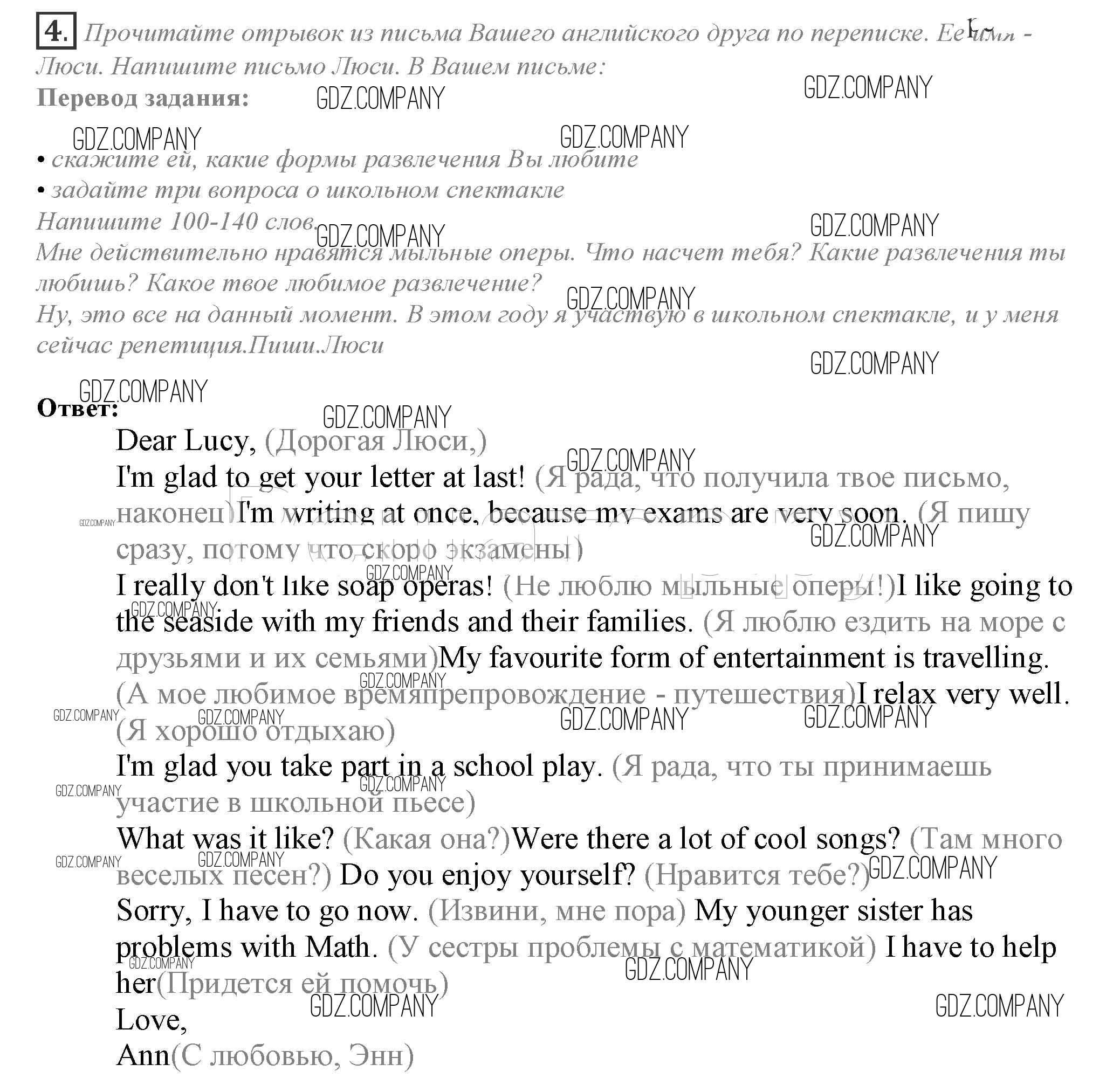 Здесь готовые ответы по Английскому языку за 10 (десятый) класс от Афанасьева, Дули, Михеева, Оби, Эванс Учебник Spotlight (издательство: Просвещение от 2015 г.) № 4