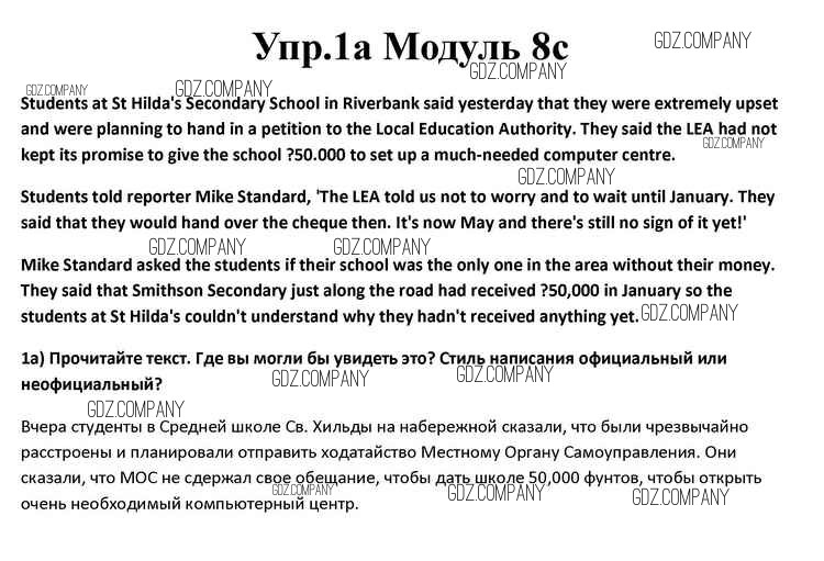 Здесь готовые ответы по Английскому языку за 10 (десятый) класс от Афанасьева, Дули, Михеева, Оби, Эванс Учебник Spotlight (издательство: Просвещение от 2015 г.) № 1a