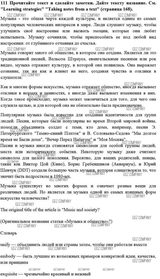 Здесь готовые ответы по Английскому языку за 10 (десятый) класс от Биболетова, Денисенко, Трубанева Учебник Enjoy English (издательство: Аст/Астрель от 2016 г.) № 111
