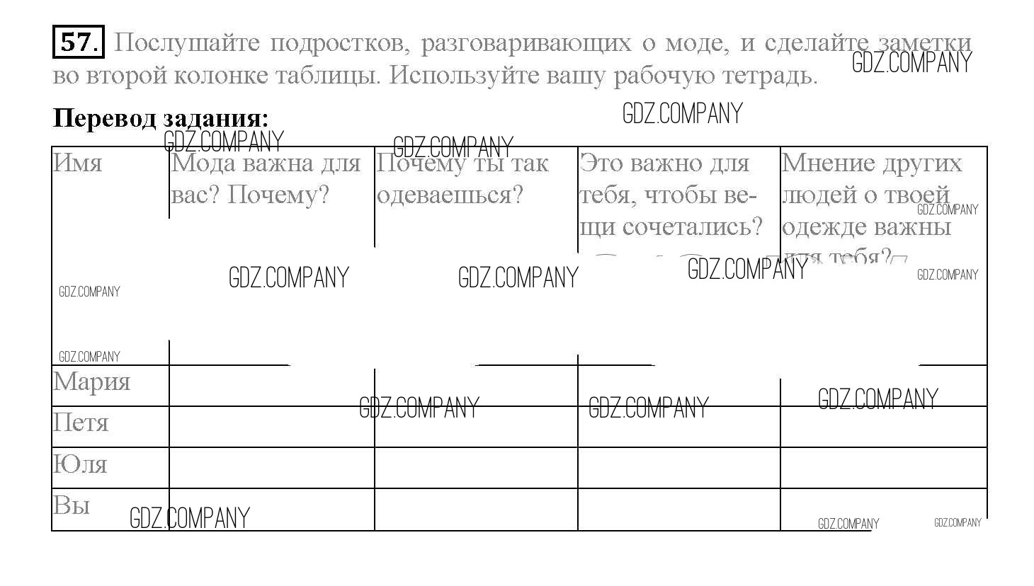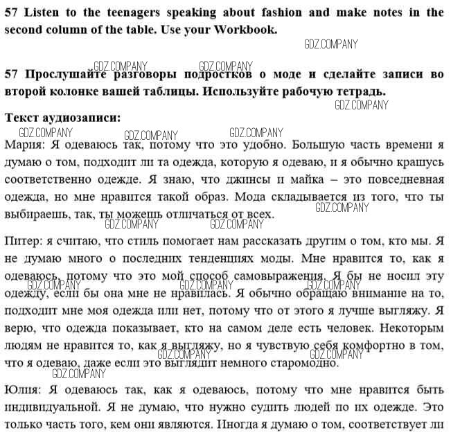 Здесь готовые ответы по Английскому языку за 10 (десятый) класс от Биболетова, Денисенко, Трубанева Учебник Enjoy English (издательство: Аст/Астрель от 2016 г.) № 57