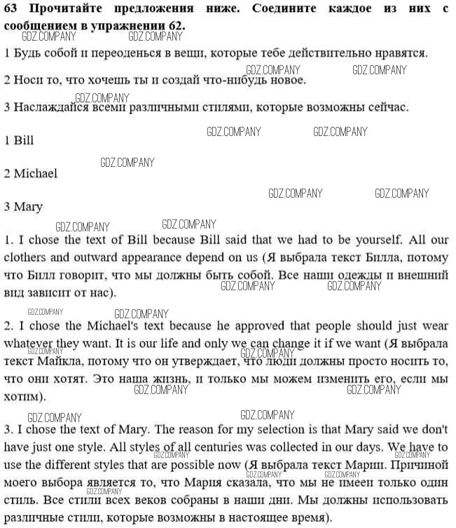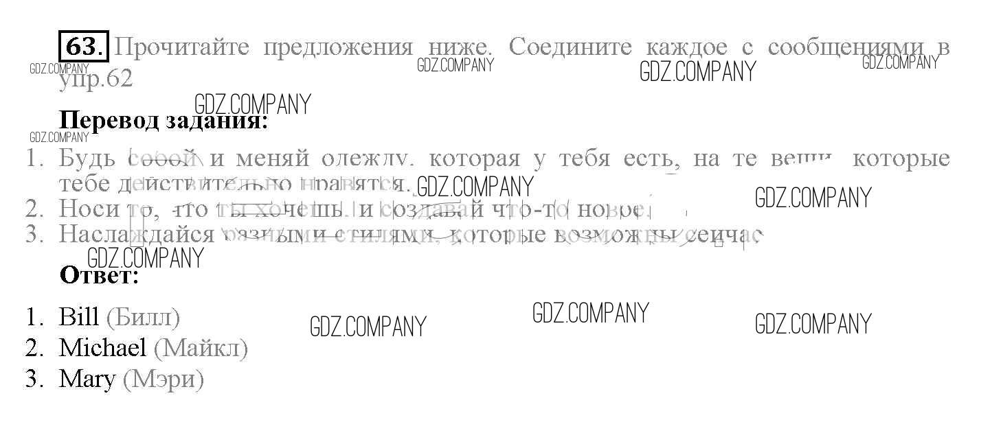Здесь готовые ответы по Английскому языку за 10 (десятый) класс от Биболетова, Денисенко, Трубанева Учебник Enjoy English (издательство: Аст/Астрель от 2016 г.) № 63
