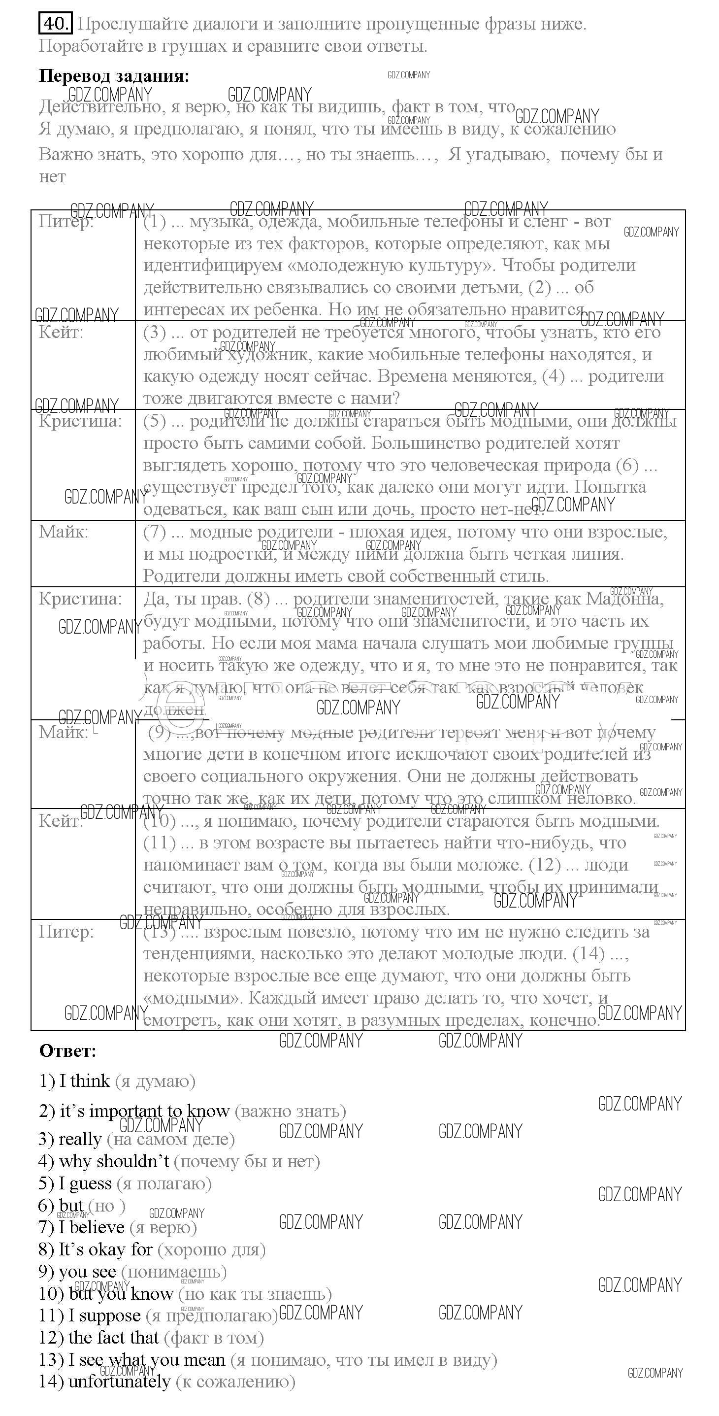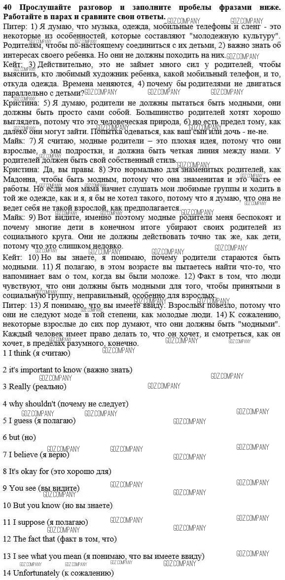 Здесь готовые ответы по Английскому языку за 10 (десятый) класс от Биболетова, Денисенко, Трубанева Учебник Enjoy English (издательство: Аст/Астрель от 2016 г.) № 40