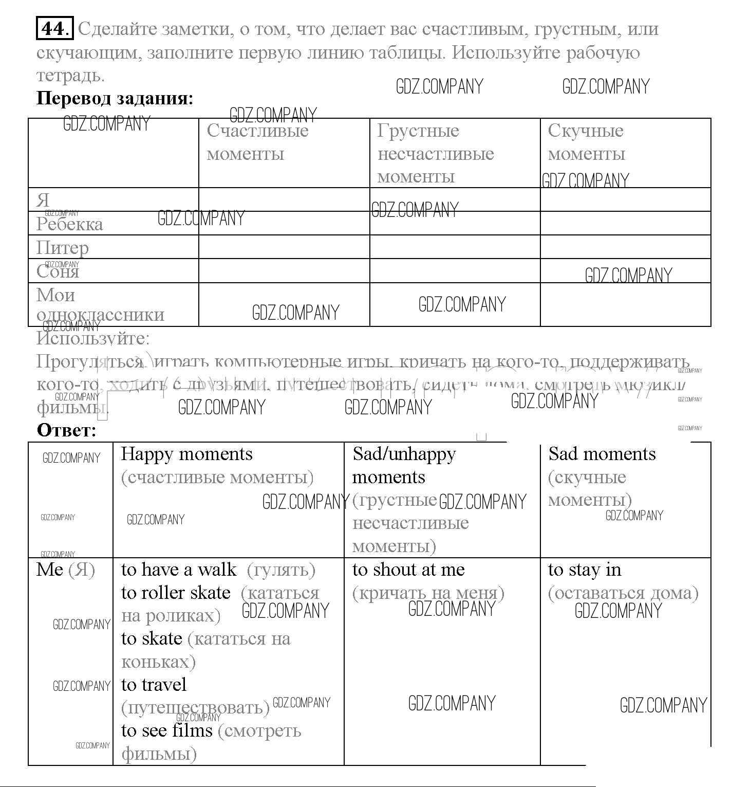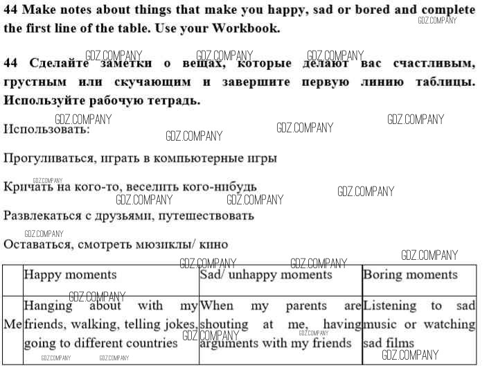Здесь готовые ответы по Английскому языку за 10 (десятый) класс от Биболетова, Денисенко, Трубанева Учебник Enjoy English (издательство: Аст/Астрель от 2016 г.) № 44