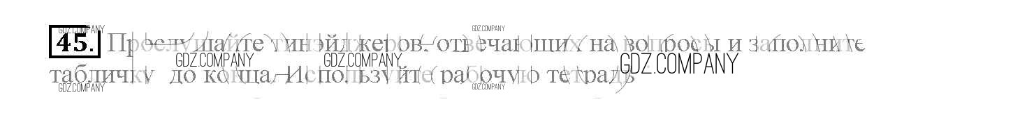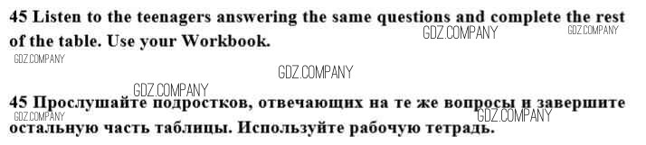 Здесь готовые ответы по Английскому языку за 10 (десятый) класс от Биболетова, Денисенко, Трубанева Учебник Enjoy English (издательство: Аст/Астрель от 2016 г.) № 45