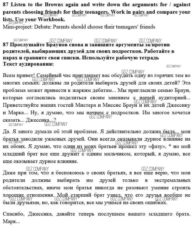 Здесь готовые ответы по Английскому языку за 10 (десятый) класс от Биболетова, Денисенко, Трубанева Учебник Enjoy English (издательство: Аст/Астрель от 2016 г.) № 87