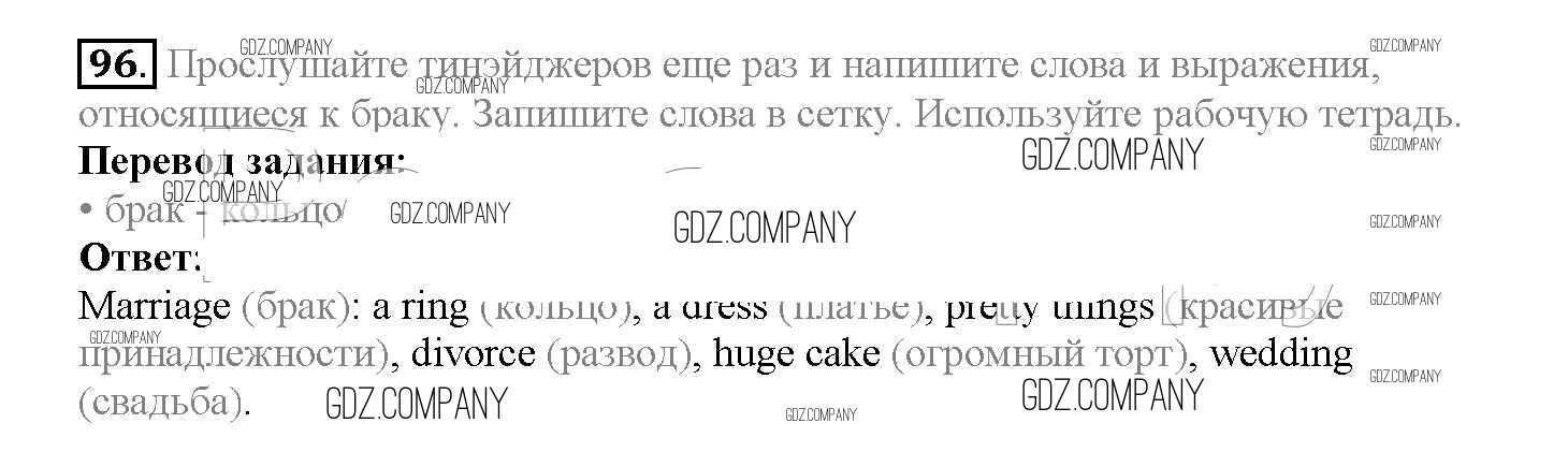 Здесь готовые ответы по Английскому языку за 10 (десятый) класс от Биболетова, Денисенко, Трубанева Учебник Enjoy English (издательство: Аст/Астрель от 2016 г.) № 96