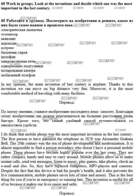Здесь готовые ответы по Английскому языку за 10 (десятый) класс от Биболетова, Денисенко, Трубанева Учебник Enjoy English (издательство: Аст/Астрель от 2016 г.) № 60