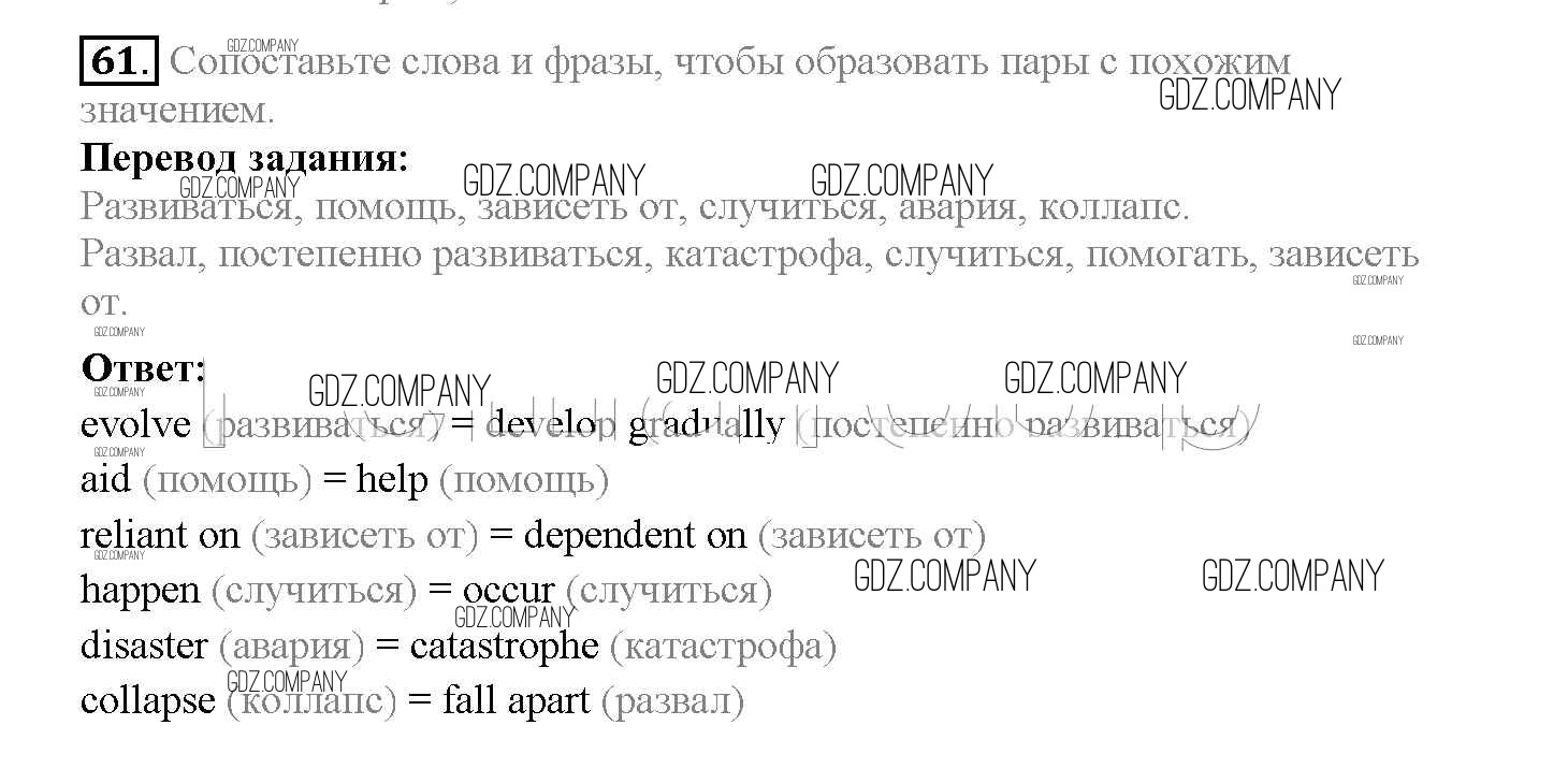 Здесь готовые ответы по Английскому языку за 10 (десятый) класс от Биболетова, Денисенко, Трубанева Учебник Enjoy English (издательство: Аст/Астрель от 2016 г.) № 61
