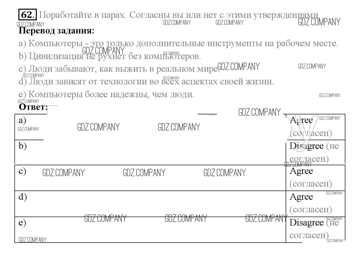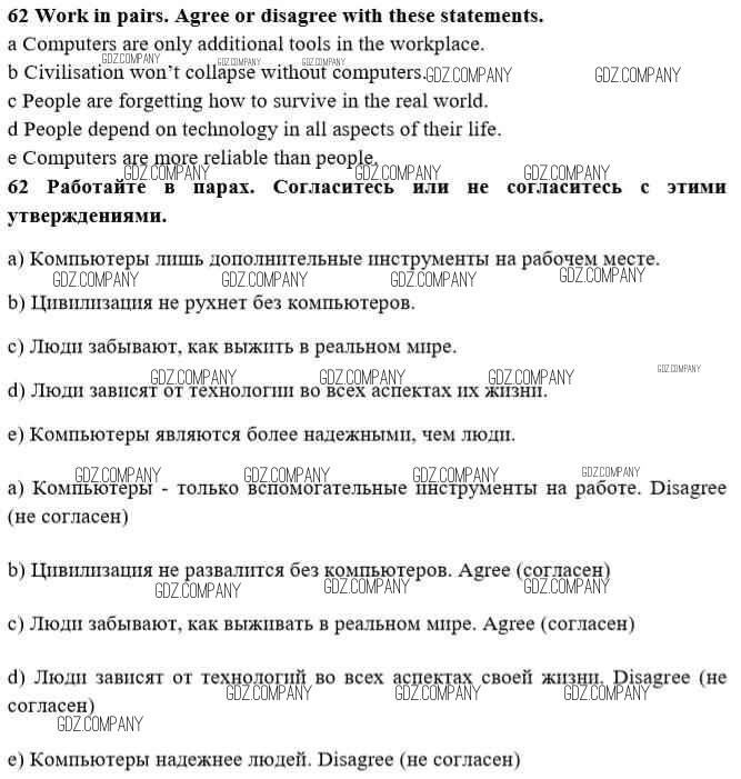 Здесь готовые ответы по Английскому языку за 10 (десятый) класс от Биболетова, Денисенко, Трубанева Учебник Enjoy English (издательство: Аст/Астрель от 2016 г.) № 62