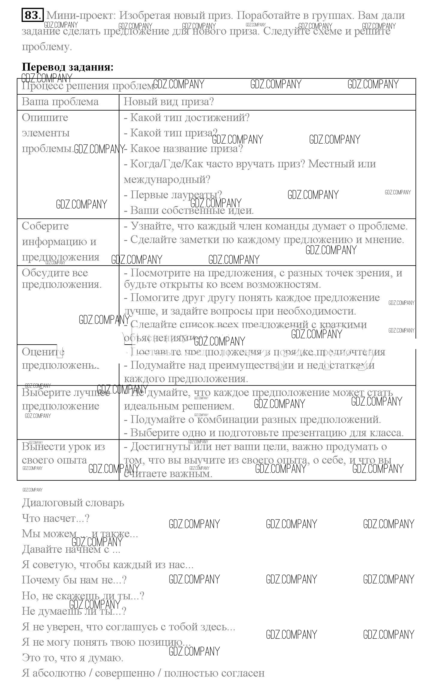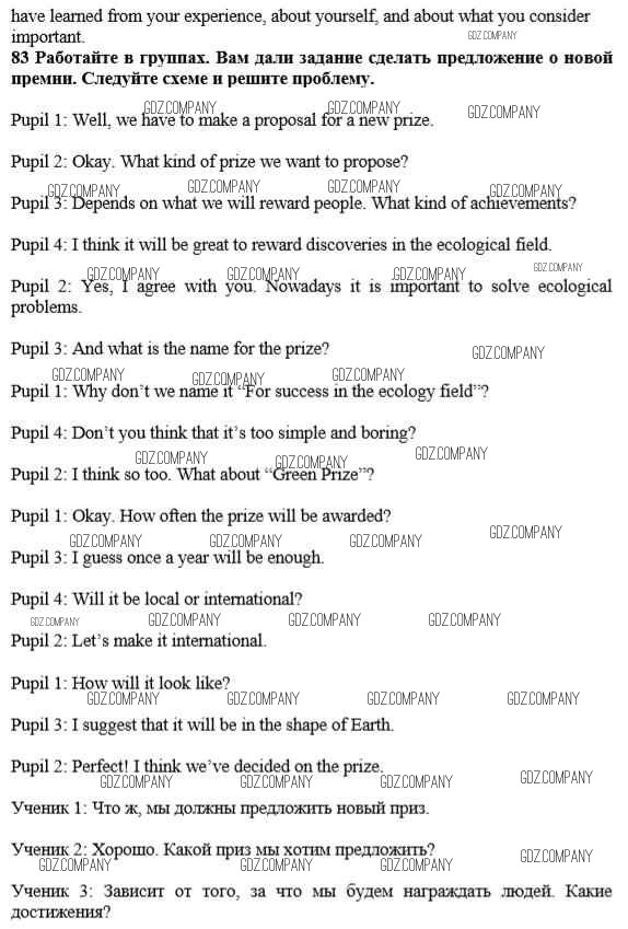 Здесь готовые ответы по Английскому языку за 10 (десятый) класс от Биболетова, Денисенко, Трубанева Учебник Enjoy English (издательство: Аст/Астрель от 2016 г.) № 83