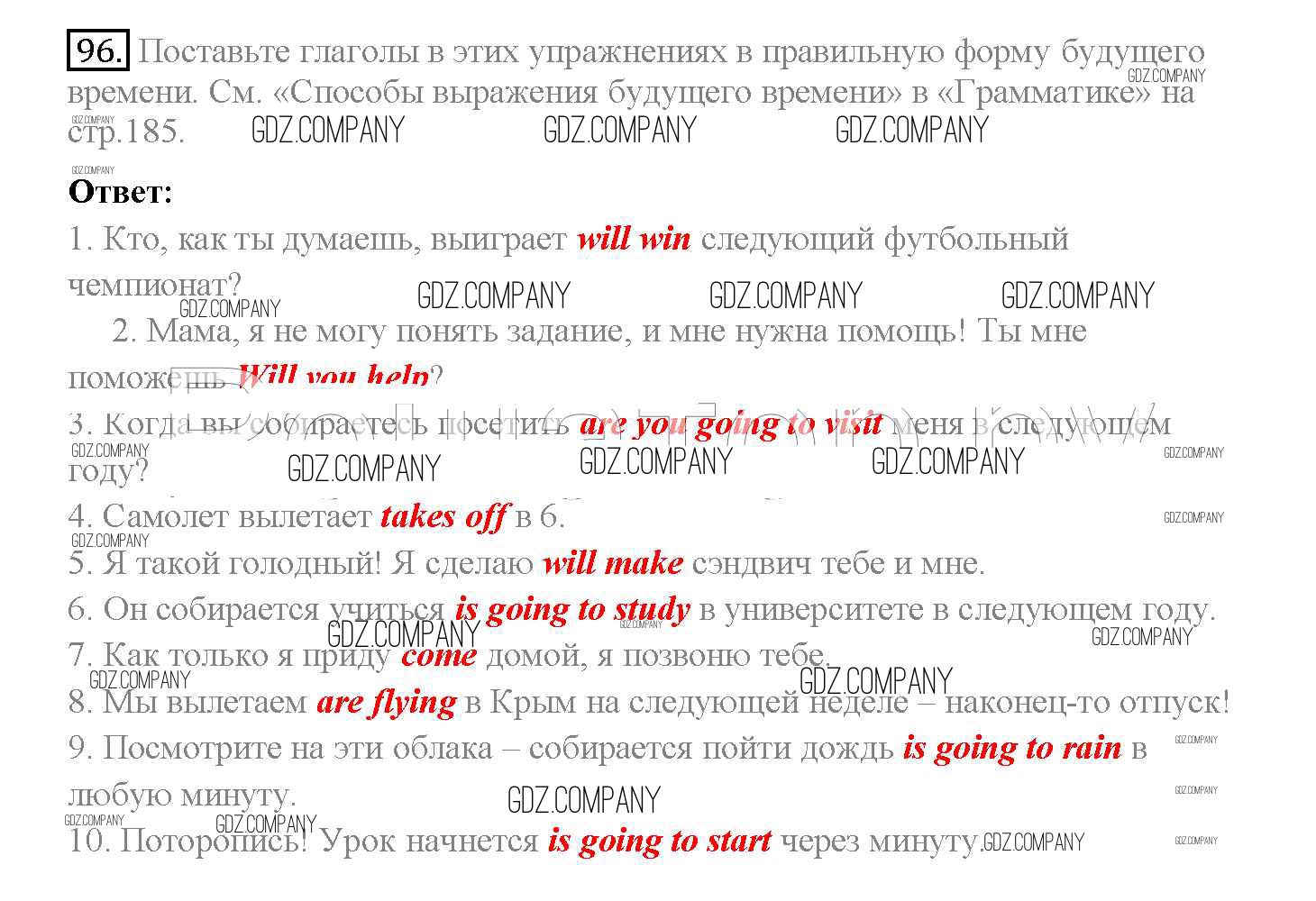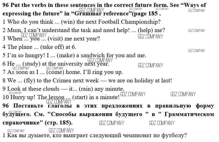 Здесь готовые ответы по Английскому языку за 10 (десятый) класс от Биболетова, Денисенко, Трубанева Учебник Enjoy English (издательство: Аст/Астрель от 2016 г.) № 96