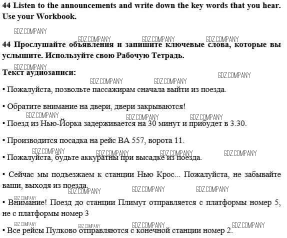 Здесь готовые ответы по Английскому языку за 10 (десятый) класс от Биболетова, Денисенко, Трубанева Учебник Enjoy English (издательство: Аст/Астрель от 2016 г.) № 44