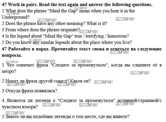Здесь готовые ответы по Английскому языку за 10 (десятый) класс от Биболетова, Денисенко, Трубанева Учебник Enjoy English (издательство: Аст/Астрель от 2016 г.) № 47