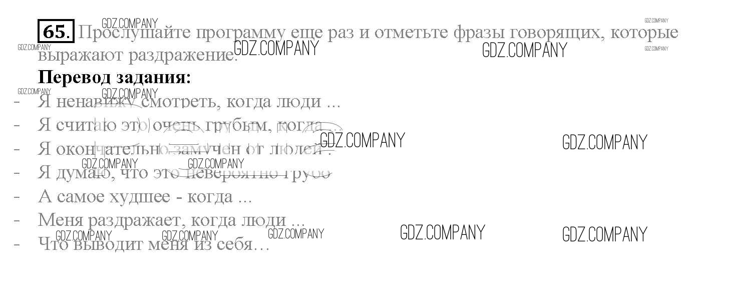 Здесь готовые ответы по Английскому языку за 10 (десятый) класс от Биболетова, Денисенко, Трубанева Учебник Enjoy English (издательство: Аст/Астрель от 2016 г.) № 65