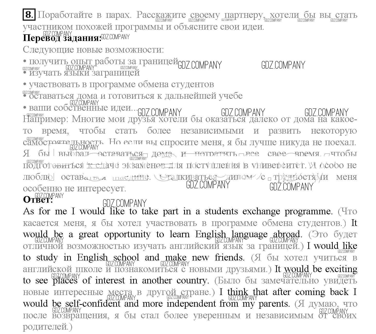 Здесь готовые ответы по Английскому языку за 10 (десятый) класс от Биболетова, Денисенко, Трубанева Учебник Enjoy English (издательство: Аст/Астрель от 2016 г.) № 8