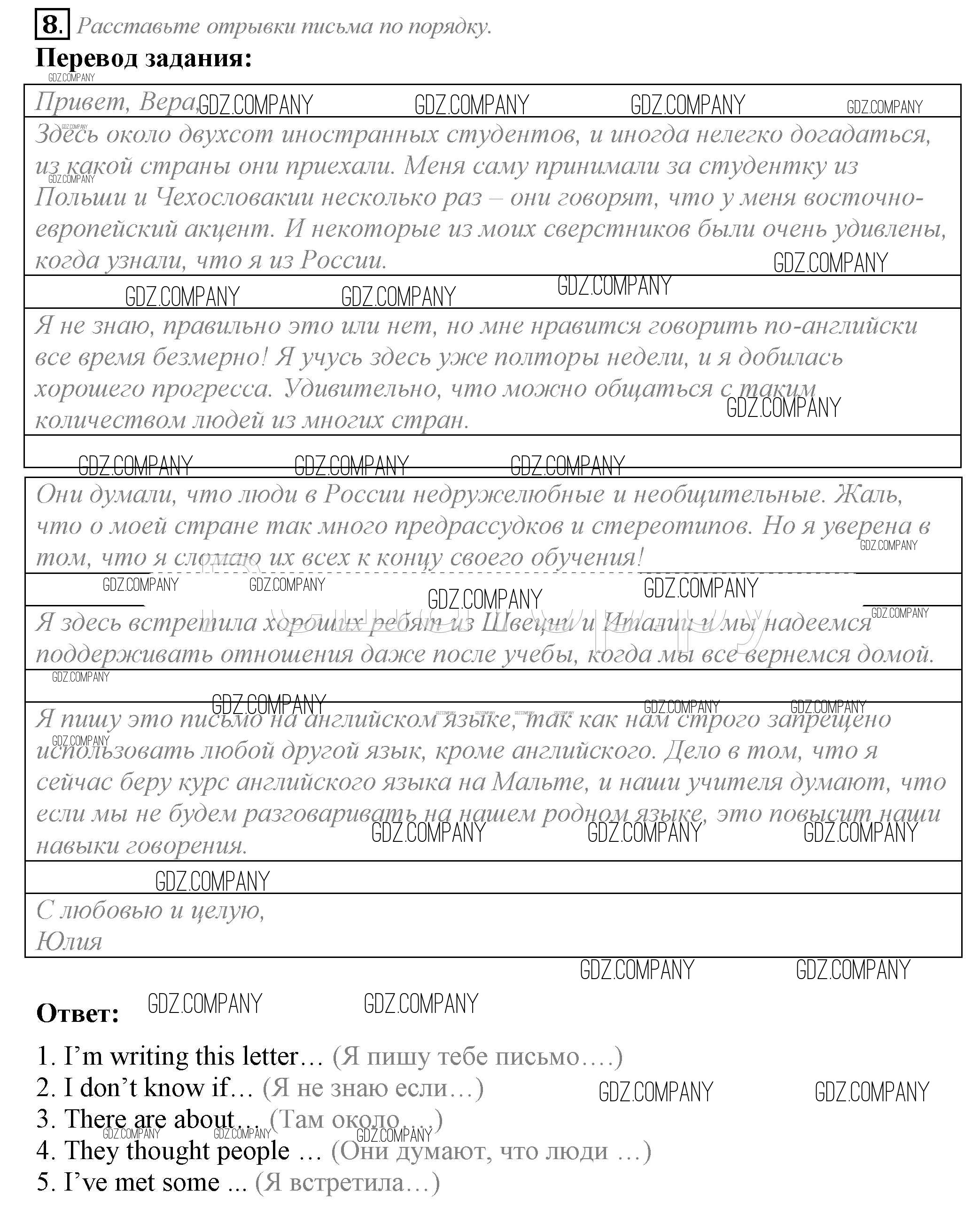 Здесь готовые ответы по Английскому языку за 10 (десятый) класс от Биболетова, Бабушис, Снежко Рабочая тетрадь Enjoy English (издательство: Аст/Астрель от 2016 г.) № 8