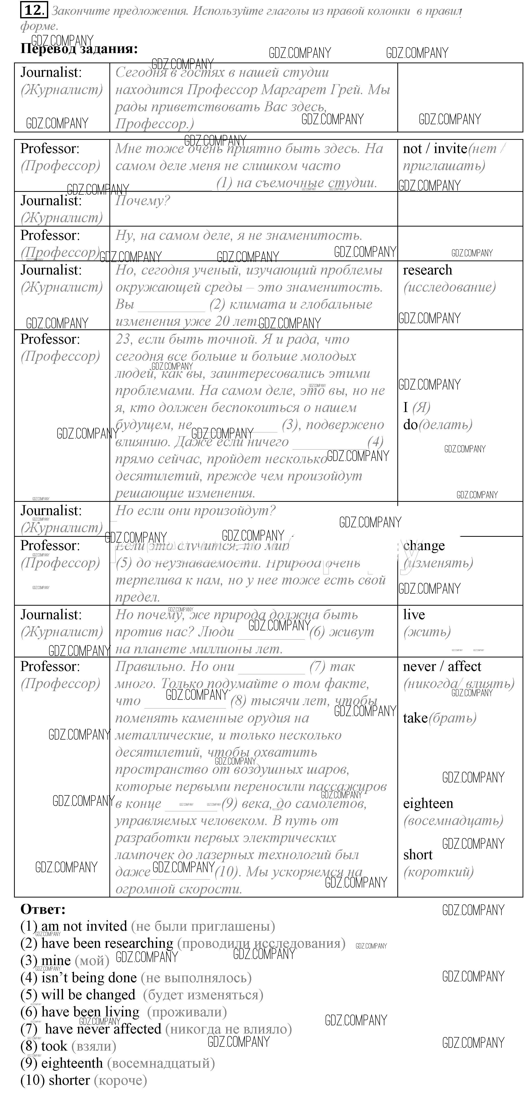 Здесь готовые ответы по Английскому языку за 10 (десятый) класс от Биболетова, Бабушис, Снежко Рабочая тетрадь Enjoy English (издательство: Аст/Астрель от 2016 г.) № 12
