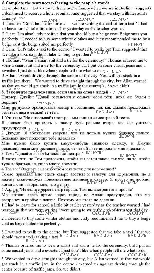 Здесь готовые ответы по Английскому языку за 10 (десятый) класс от Биболетова, Бабушис, Снежко Рабочая тетрадь Enjoy English (издательство: Титул от 2013 г.) № 8