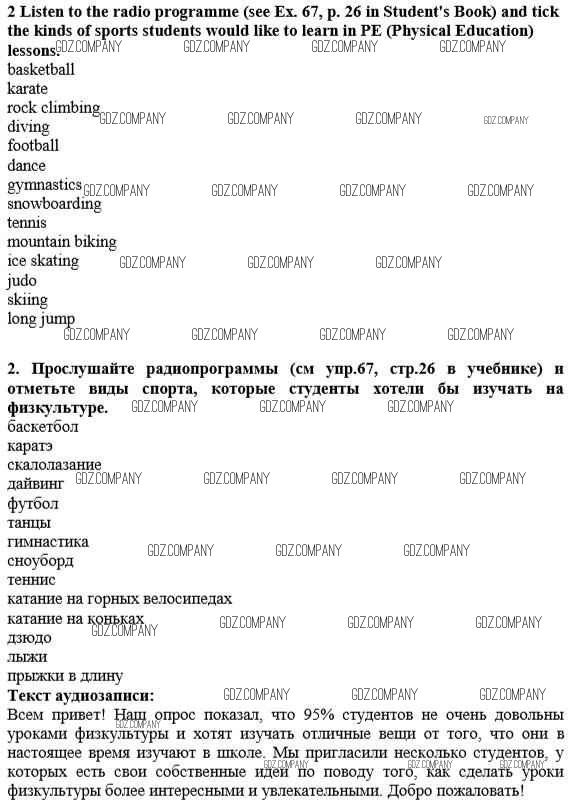 Здесь готовые ответы по Английскому языку за 10 (десятый) класс от Биболетова, Бабушис, Снежко Рабочая тетрадь Enjoy English (издательство: Титул от 2013 г.) № 2