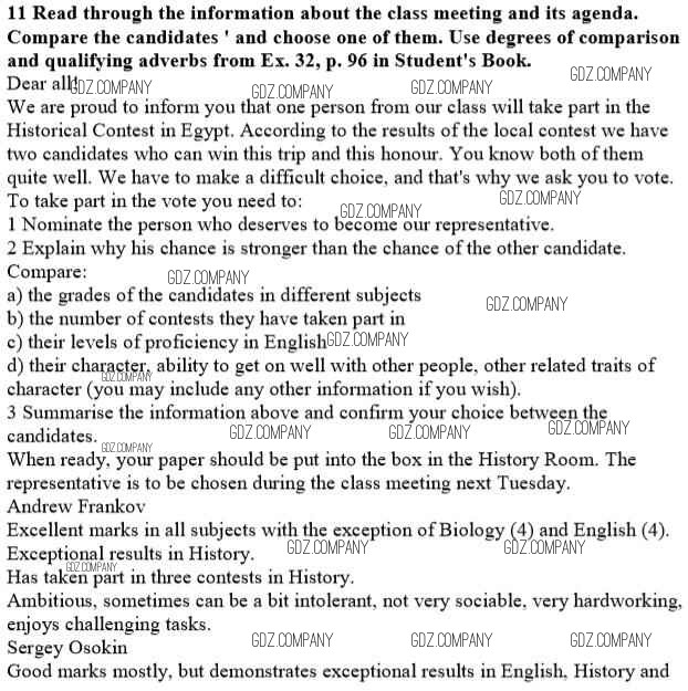 Здесь готовые ответы по Английскому языку за 10 (десятый) класс от Биболетова, Бабушис, Снежко Рабочая тетрадь Enjoy English (издательство: Титул от 2013 г.) № 11