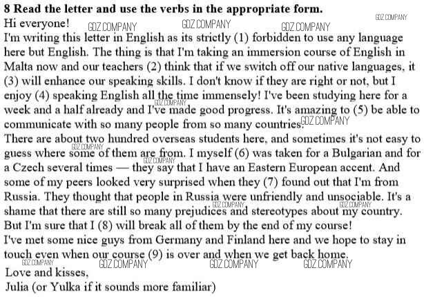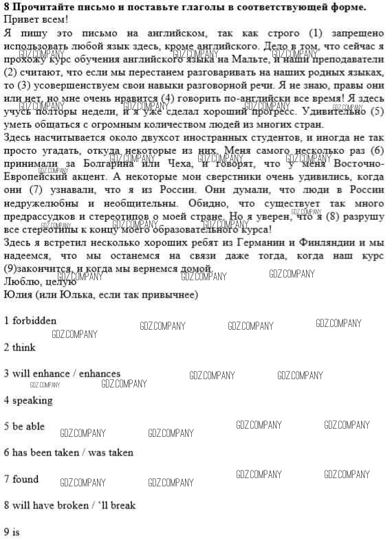 Здесь готовые ответы по Английскому языку за 10 (десятый) класс от Биболетова, Бабушис, Снежко Рабочая тетрадь Enjoy English (издательство: Титул от 2013 г.) № 8