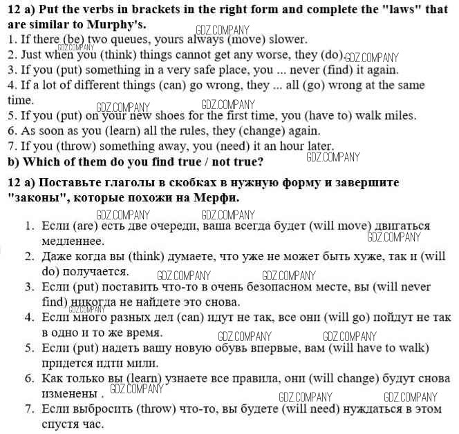 Здесь готовые ответы по Английскому языку за 10 (десятый) класс от Кауфман Учебник Happy English (издательство: Титул от 2014 г.) № 12