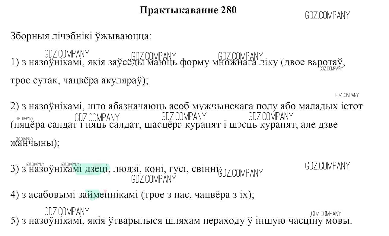 Здесь готовые ответы по Белорусскому языку за 10 (десятый) класс от Валочка, Васюковіч, Зелянко, Міхнёнак, Якуба Учебник (издательство: Национальный институт образования от 2016 г.) № 280