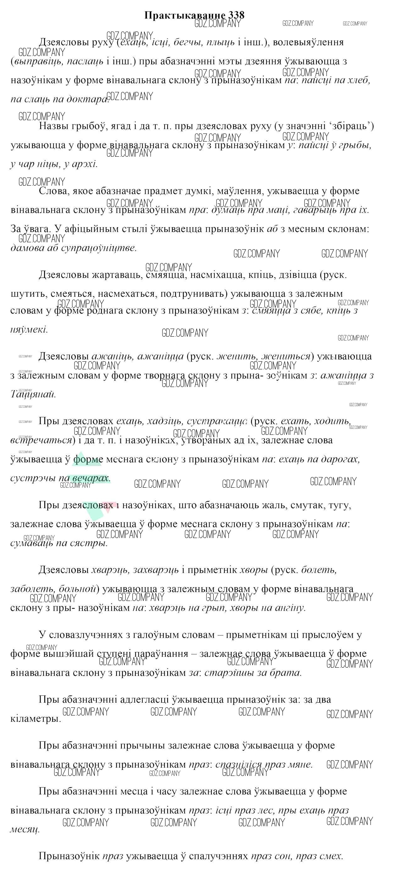 Здесь готовые ответы по Белорусскому языку за 10 (десятый) класс от Валочка, Васюковіч, Зелянко, Міхнёнак, Якуба Учебник (издательство: Национальный институт образования от 2016 г.) № 338