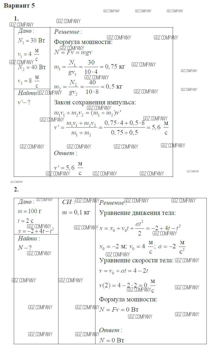 Здесь готовые ответы по Физике за 10 (десятый) класс от Ерюткин, Ерюткина Самостоятельные и контрольные работы Базовый и углубленный уровень (издательство: Просвещение от 2018 г.) № 5 Базовый и углубленный уровень