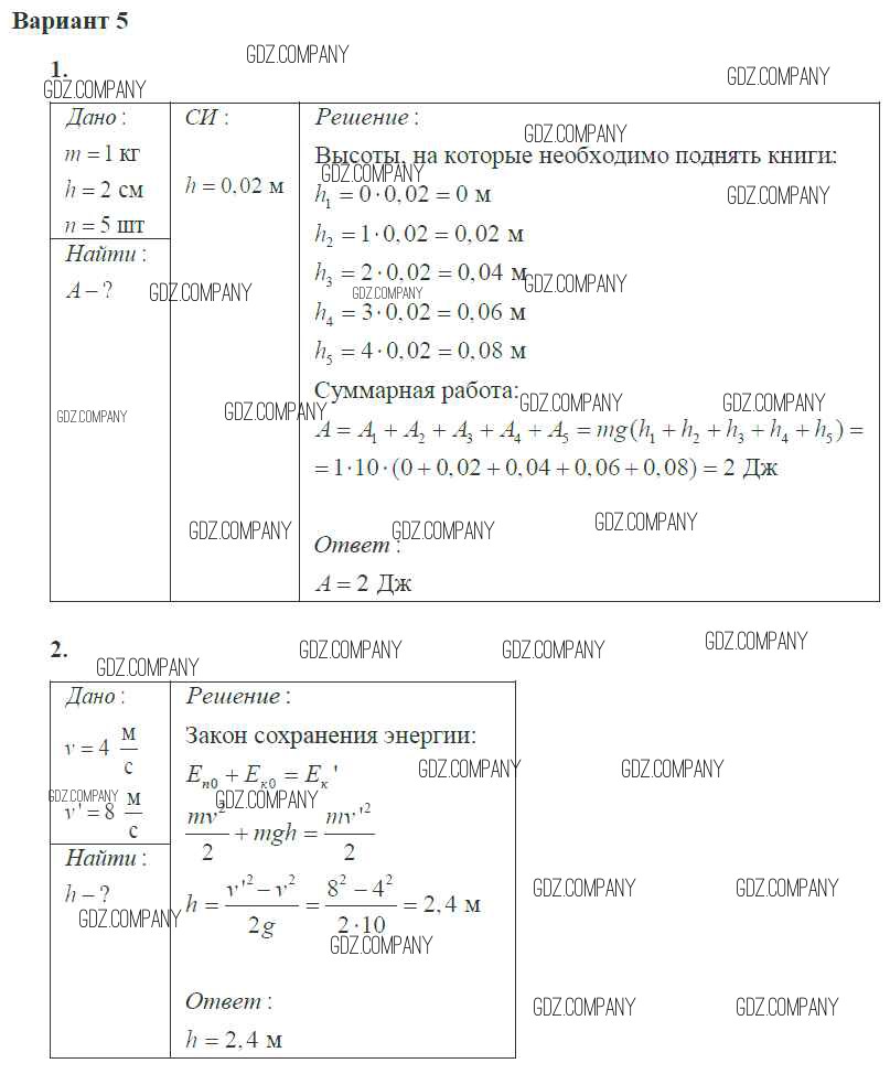 Здесь готовые ответы по Физике за 10 (десятый) класс от Ерюткин, Ерюткина Самостоятельные и контрольные работы Базовый и углубленный уровень (издательство: Просвещение от 2018 г.) № 5 Базовый и углубленный уровень
