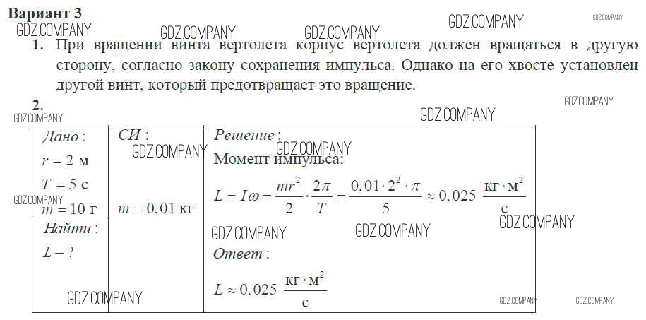 Здесь готовые ответы по Физике за 10 (десятый) класс от Ерюткин, Ерюткина Самостоятельные и контрольные работы Базовый и углубленный уровень (издательство: Просвещение от 2018 г.) № 3 Базовый и углубленный уровень
