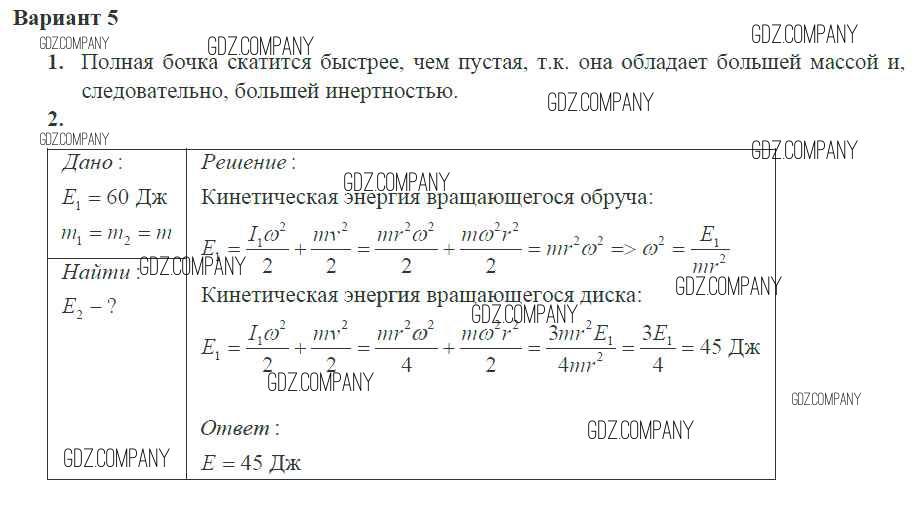 Здесь готовые ответы по Физике за 10 (десятый) класс от Ерюткин, Ерюткина Самостоятельные и контрольные работы Базовый и углубленный уровень (издательство: Просвещение от 2018 г.) № 5 Базовый и углубленный уровень