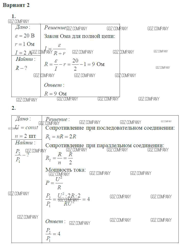 Здесь готовые ответы по Физике за 10 (десятый) класс от Ерюткин, Ерюткина Самостоятельные и контрольные работы Базовый и углубленный уровень (издательство: Просвещение от 2018 г.) № 2 Базовый и углубленный уровень