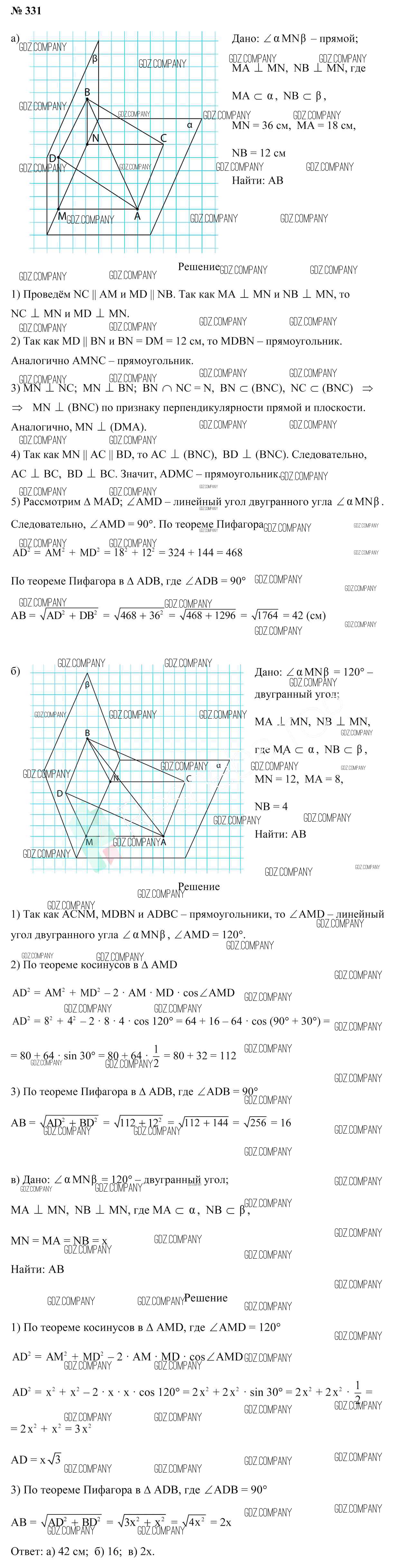 Здесь готовые ответы по Геометрии за 10 (десятый) класс от Латотин, Чеботаревский, Горбунова Учебник (издательство: Народная асвета от 2020 г.) № 331