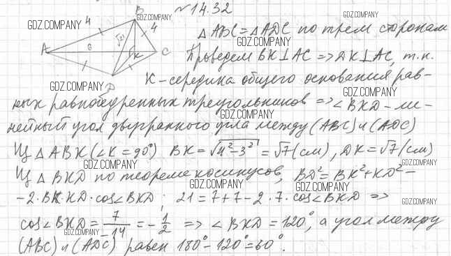 Здесь готовые ответы по Геометрии за 10 (десятый) класс от Мерзляк, Номировский, Поляков Учебник Алгоритм успеха Углубленный уровень (издательство: Вентана-граф от 2021 г.) № 14.32 Углубленный уровень