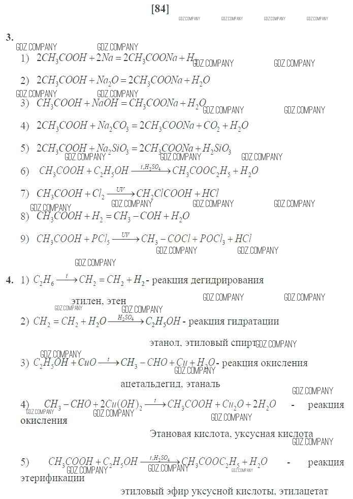 Здесь готовые ответы по Химии за 10 (десятый) класс от Габриелян, Сладков Рабочая тетрадь Вертикаль Базовый уровень (издательство: Дрофа от 2017 г.) № 84 Базовый уровень