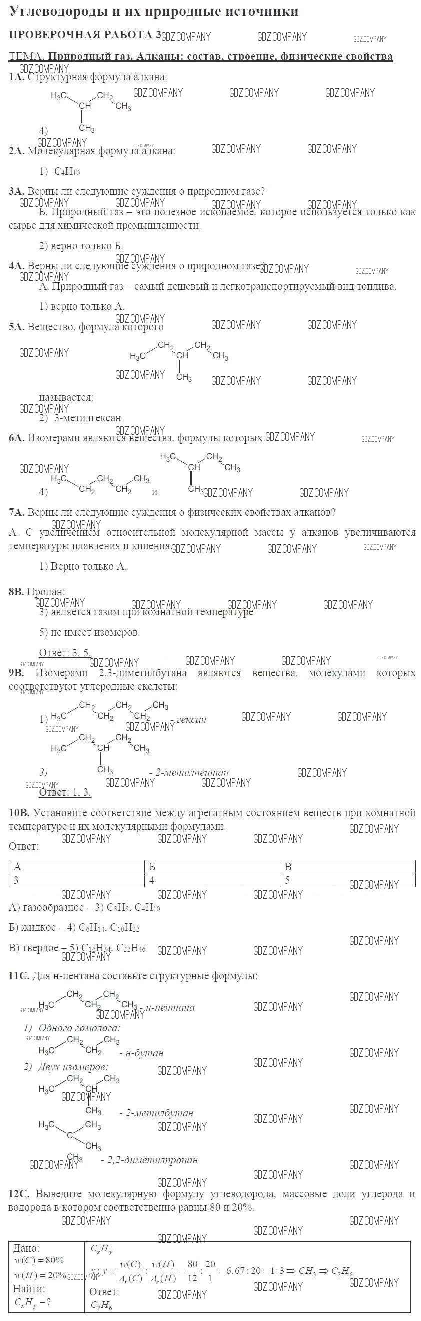 Здесь готовые ответы по Химии за 10 (десятый) класс от Габриелян, Купцова Тетрадь для оценки качества знаний (издательство: Дрофа от 2014 г.) № 3