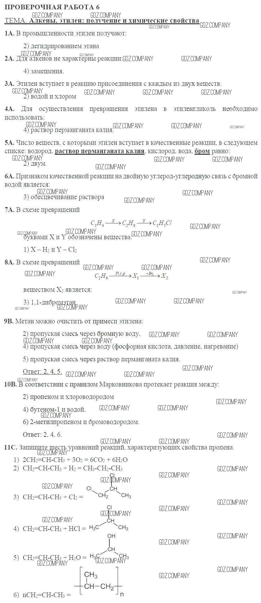 Здесь готовые ответы по Химии за 10 (десятый) класс от Габриелян, Купцова Тетрадь для оценки качества знаний (издательство: Дрофа от 2014 г.) № 6