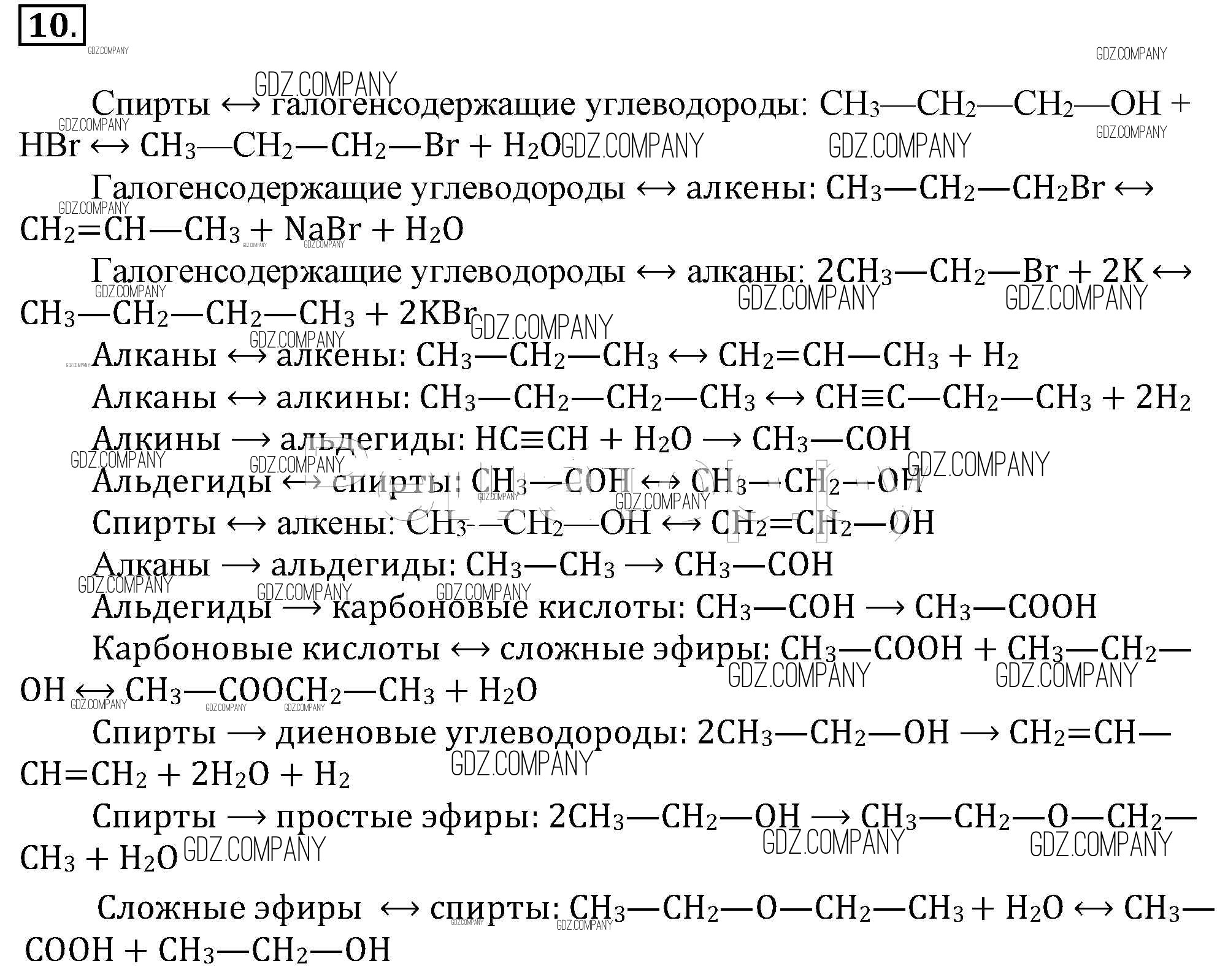 Здесь готовые ответы по Химии за 10 (десятый) класс от Рудзитис, Фельдман Учебник (издательство: Просвещение от 2014 г.) № 10