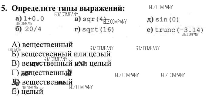 Здесь готовые ответы по Информатике за 10 (десятый) класс от Семакин, Хеннер, Шеина Учебник Базовый уровень (издательство: Бином от 2017 г.) № 5 Базовый уровень