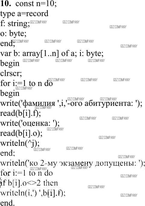 Здесь готовые ответы по Информатике за 10 (десятый) класс от Семакин, Хеннер, Шеина Учебник Базовый уровень (издательство: Бином от 2017 г.) № 10 Базовый уровень