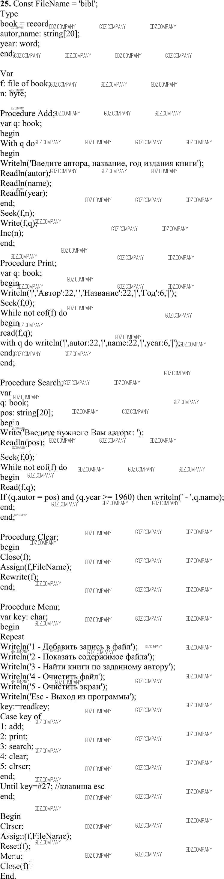 Здесь готовые ответы по Информатике за 10 (десятый) класс от Семакин, Хеннер, Шеина Учебник Базовый уровень (издательство: Бином от 2017 г.) № 25 Базовый уровень