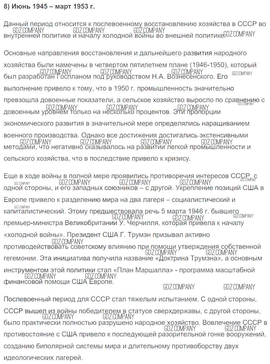 Здесь готовые ответы по Истории за 10 (десятый) класс от Артасов Контрольные работы УМК (издательство: Просвещение от 2017 г.) № 8