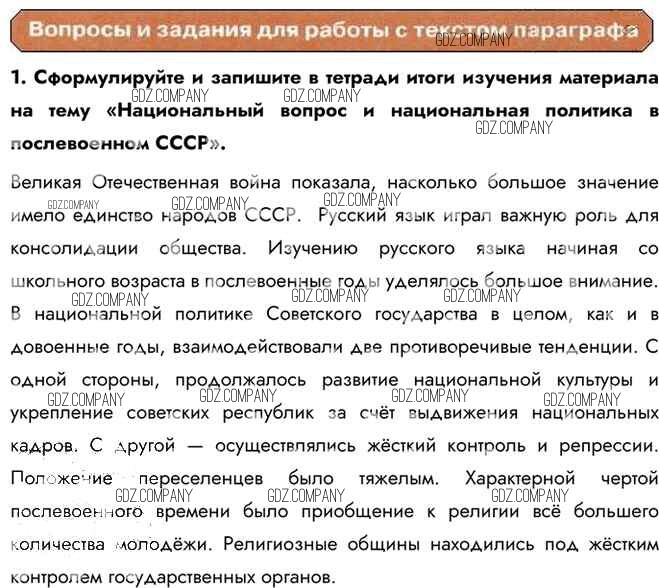 национальный вопрос и национальная политика в послевоенном СССР / работа с текстом параграфа / 1