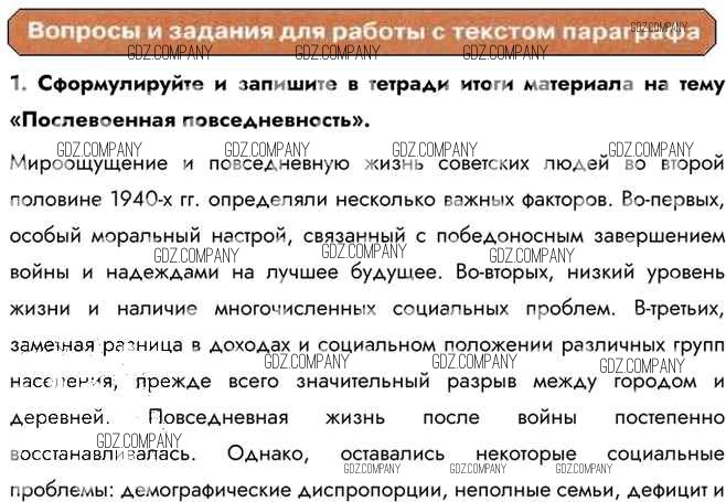 послевоенная повседневность / работа с текстом параграфа / 1