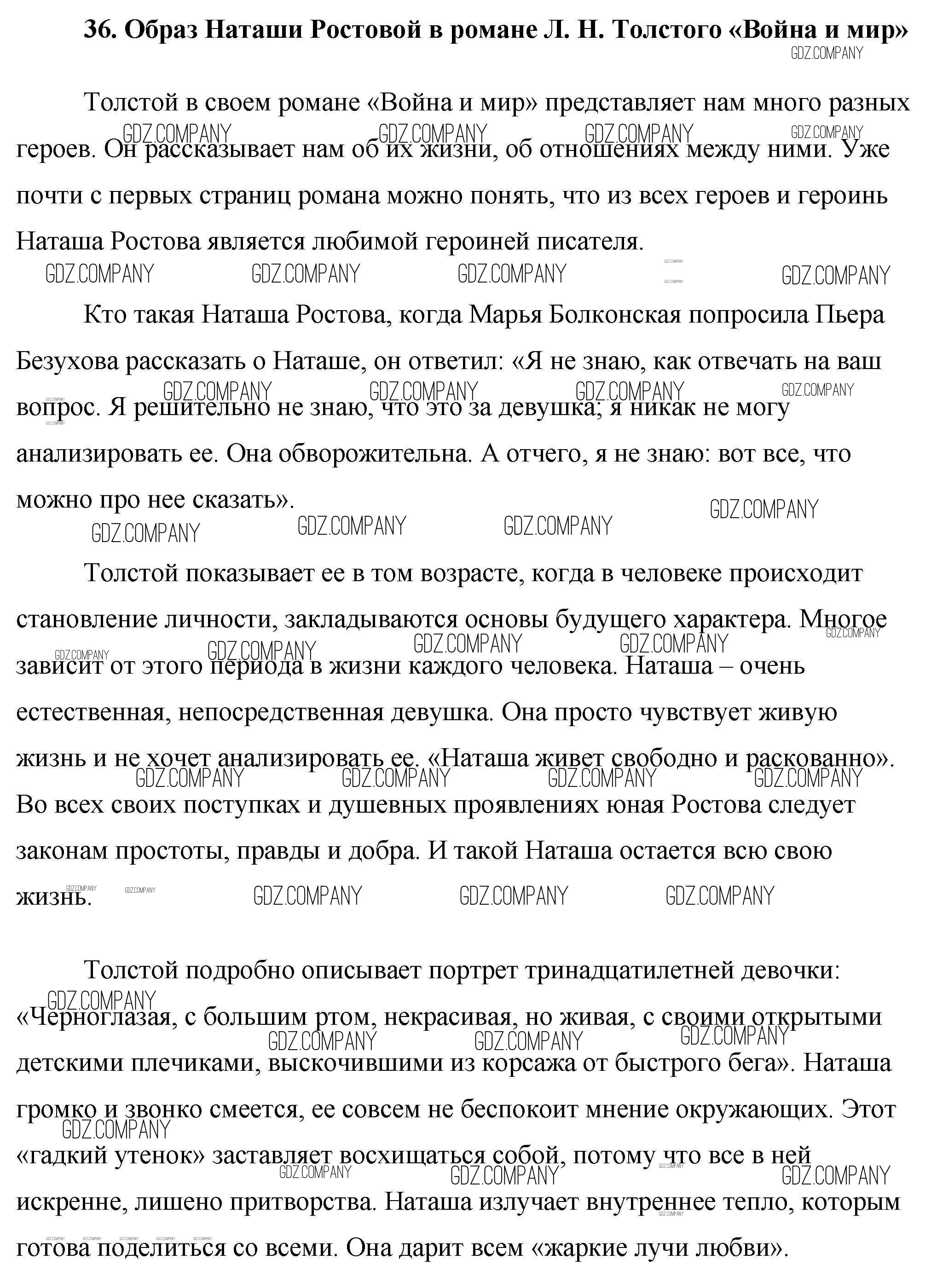 сочинение / 36. Образ Наташи Ростовой в романе Л. Н. Толстого «Война и мир»