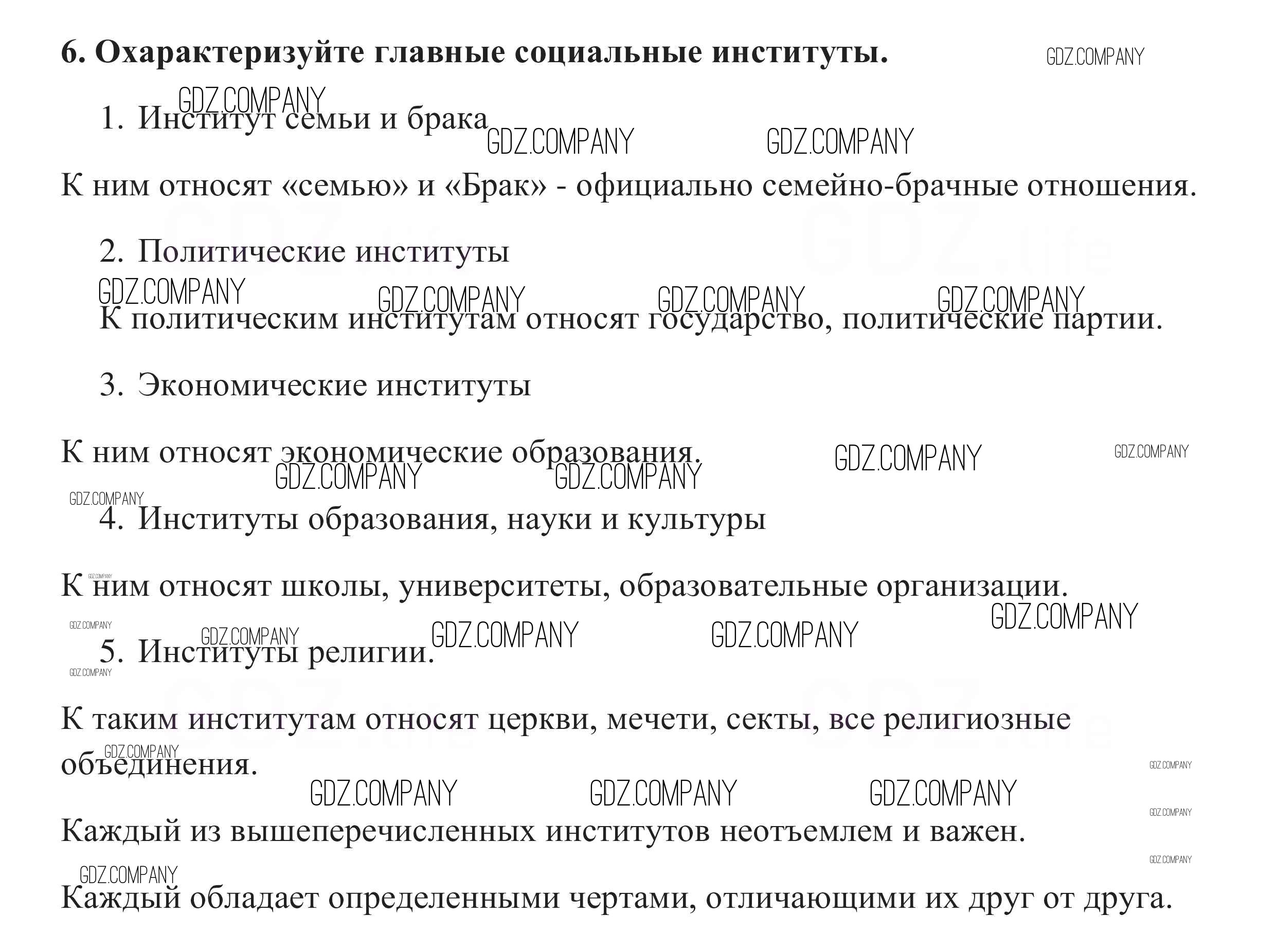 Здесь готовые ответы по Обществознанию за 10 (десятый) класс от Боголюбов, Аверьянов, Белявский, Иванова Учебник Базовый уровень (издательство: Просвещение от 2015 г.) № 6 Базовый уровень