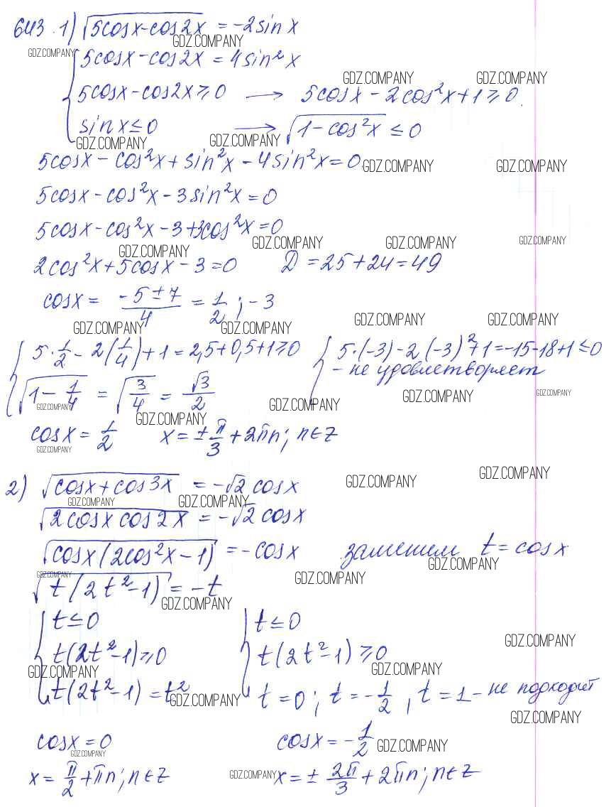 Здесь готовые ответы по Алгебре за 11 (десятый) класс от Алимов, Ткачева, Колягин, Федорова, Шабунин Учебник Базовый и углубленный уровень (издательство: Просвещение от 2015 г.) № 643 Базовый и углубленный уровень