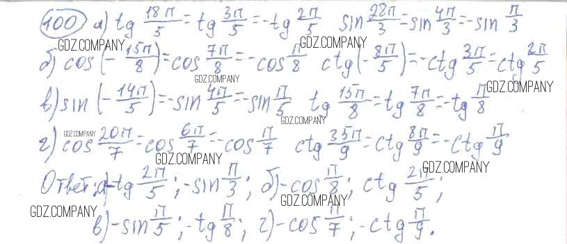 Здесь готовые ответы по Алгебре за 11 (десятый) класс от Колмогоров, Абрамов, Дудницын, Ивлев, Шварцбурд Учебник (издательство: Просвещение от 2008 г.) № 100