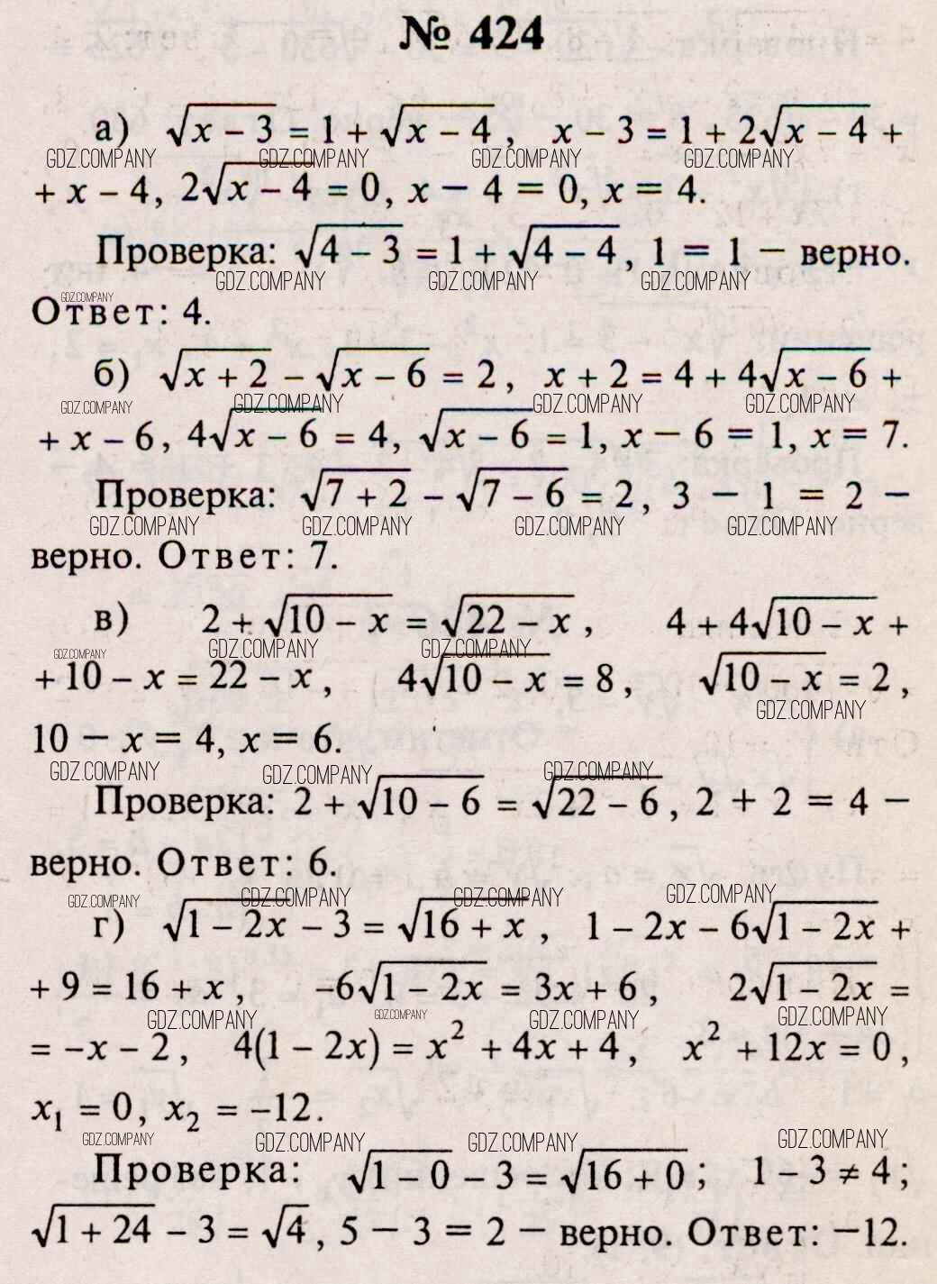 Здесь готовые ответы по Алгебре за 11 (десятый) класс от Колмогоров, Абрамов, Дудницын, Ивлев, Шварцбурд Учебник (издательство: Просвещение от 2008 г.) № 424